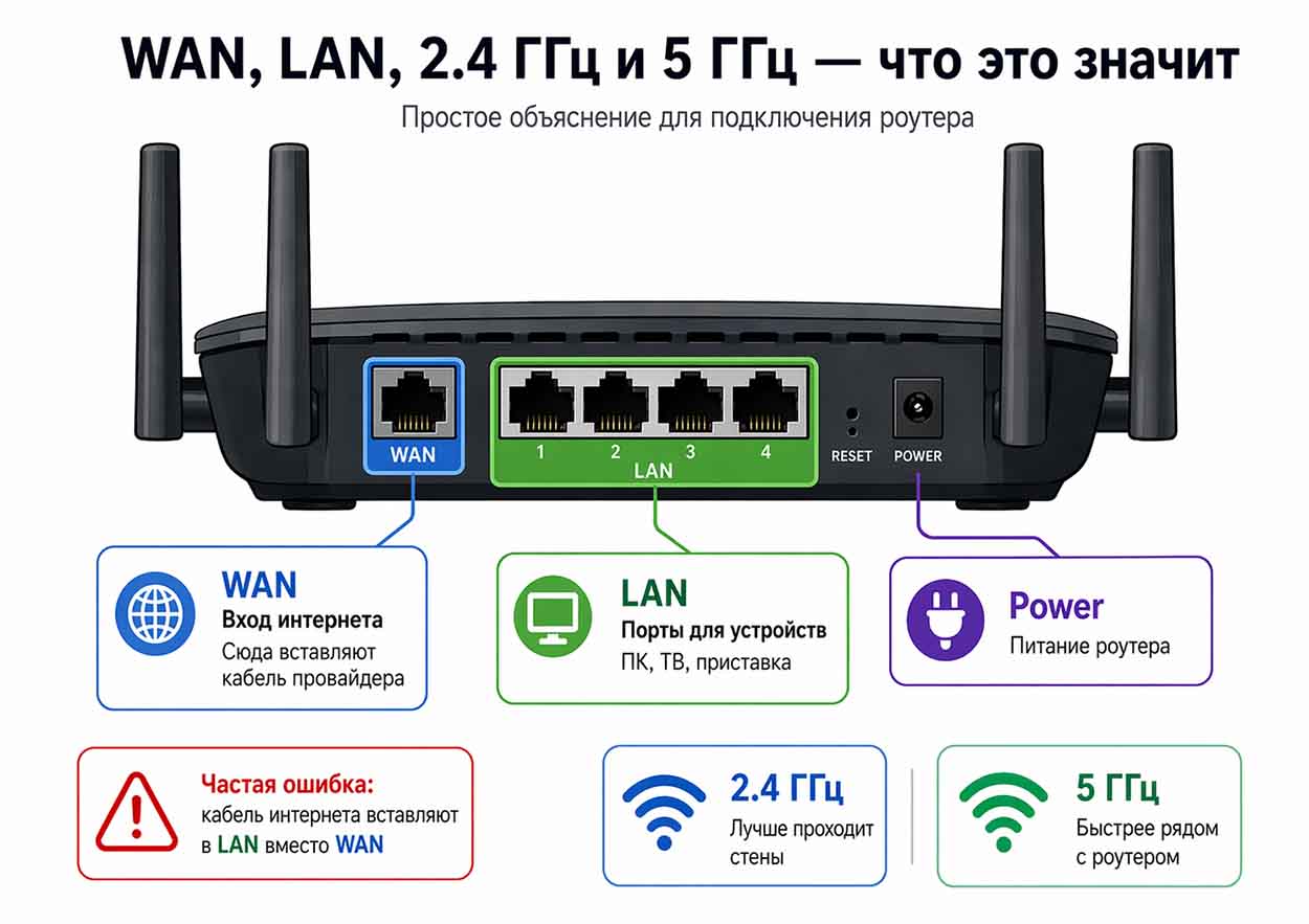 Что означают WAN, LAN, 2.4 ГГц и 5 ГГц простым языком